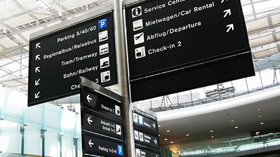 تابلوهای آویز: از سقف آویزان میشوند و برای راهنمایی از راه دور، به ویژه در راهروهای بلند، مناسباند.